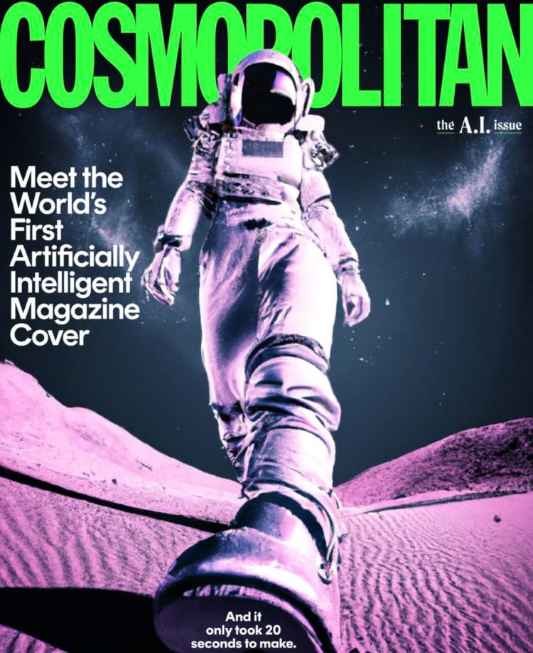 One example is Cosmopolitan’s recent AI-themed issue, which broke new ground with the world’s first AI-generated magazine cover – a collaboration with award-winning director Karen X. Cheng. After extensive experimentation, Cheng inputted the following complex text prompt into another leading AI art generator, DALL·E 2, to produce the final image: “Wide-angle shot from below of a female astronaut with an athletic feminine body walking with swagger toward camera on Mars in an infinite universe, synthwave digital art”.