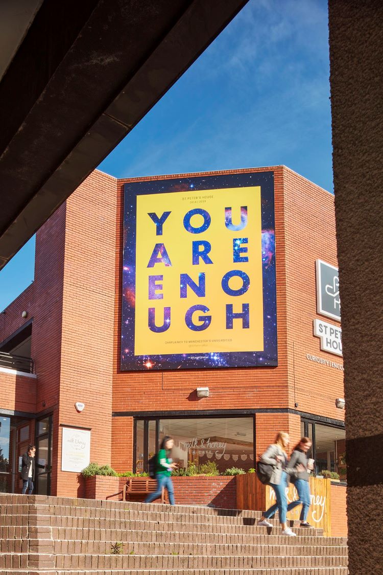 His KINDNESS AT ITS PROPER LEVEL billboards blew me away; beautifully timed celebrations of the community spirit that flourished during the COVID-19 pandemic lockdown. His stickers and building sized banners in Manchester will remind you that YOU ARE ENOUGH.