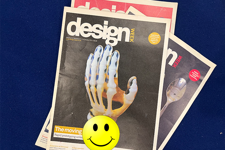 18. Above is an image of a copy of Design Week from 2010. What word is the smiley concealing?