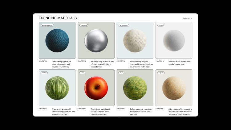 Users can search for a material by its properties, such as waterproof, flexible, heatproof, if they have certain requirements. Sutherland says: “Our standard of Plastic Free is very high, which is important as designers need to trust that deep research has validated all materials”.