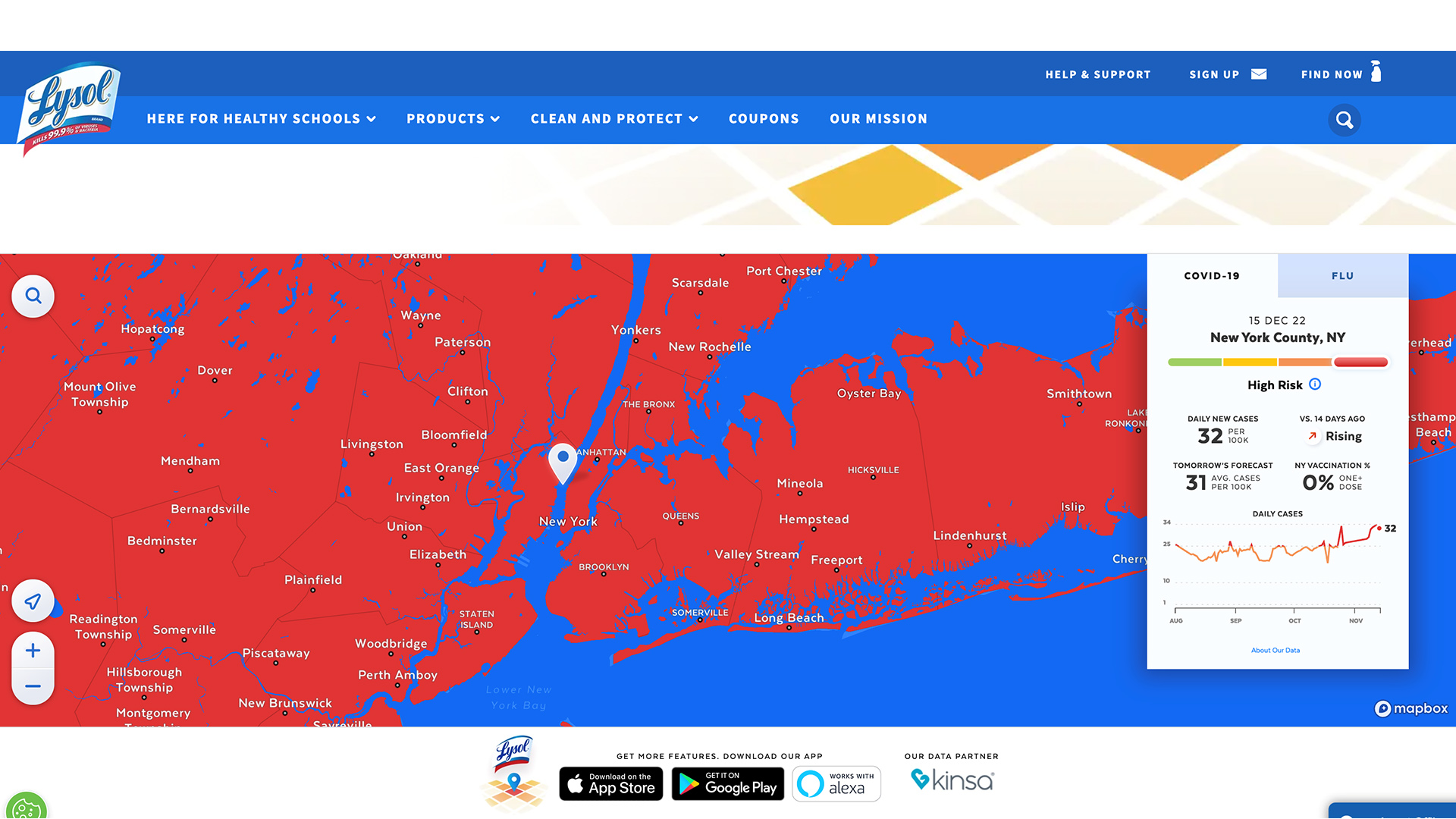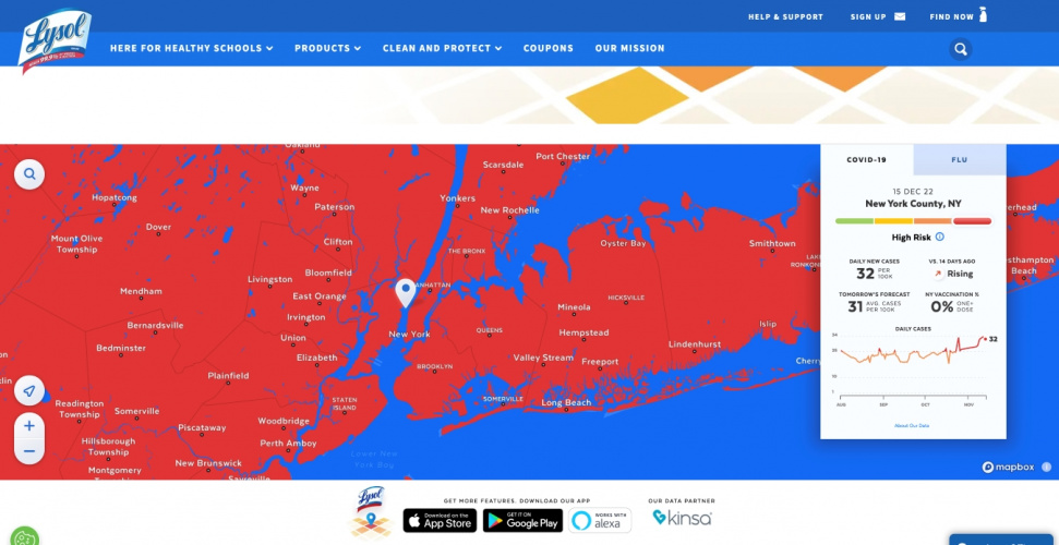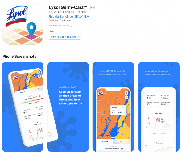 Lysol provides regional and city-wide “Germ-Casts” across North America and Canada that “give parents the opportunity to tap into live and forecasted information for cold and flu outbreaks”.