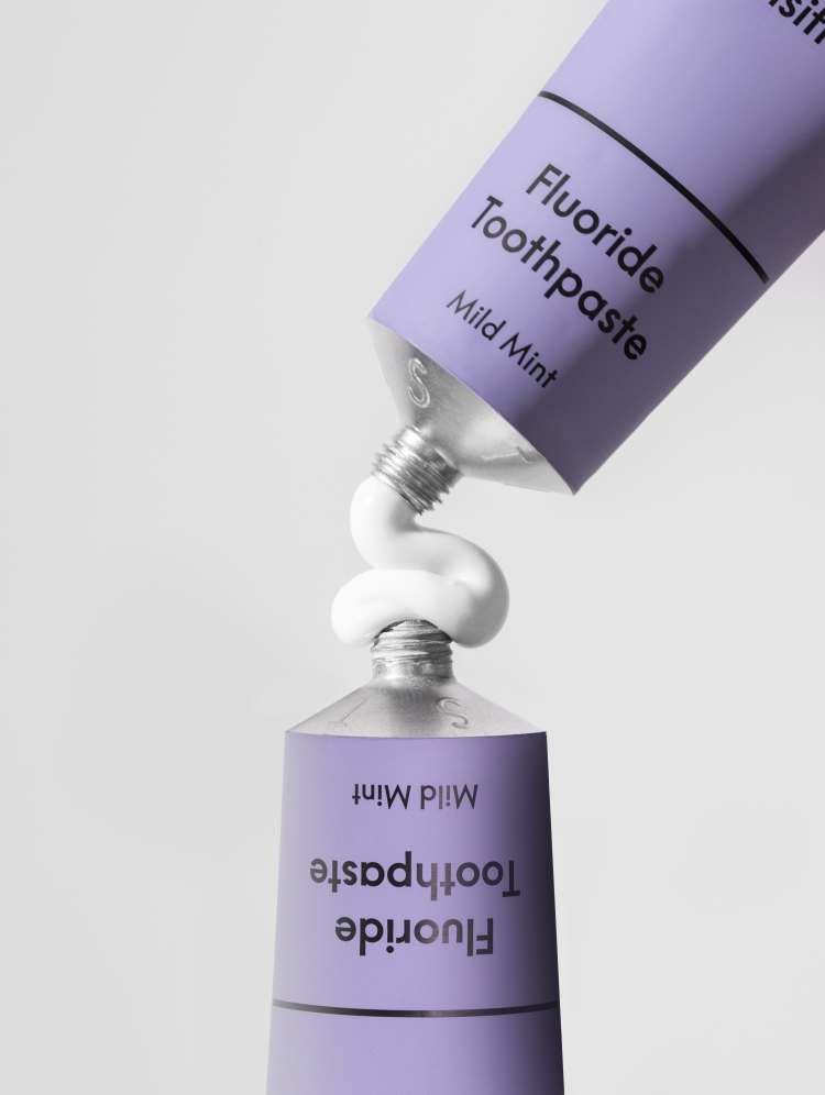 A pale purple, turquoise and white colour palette looks to juxtapose the more clinical nature of the typographic system while breaking away from the toothpaste industry standard of blue, red and white.