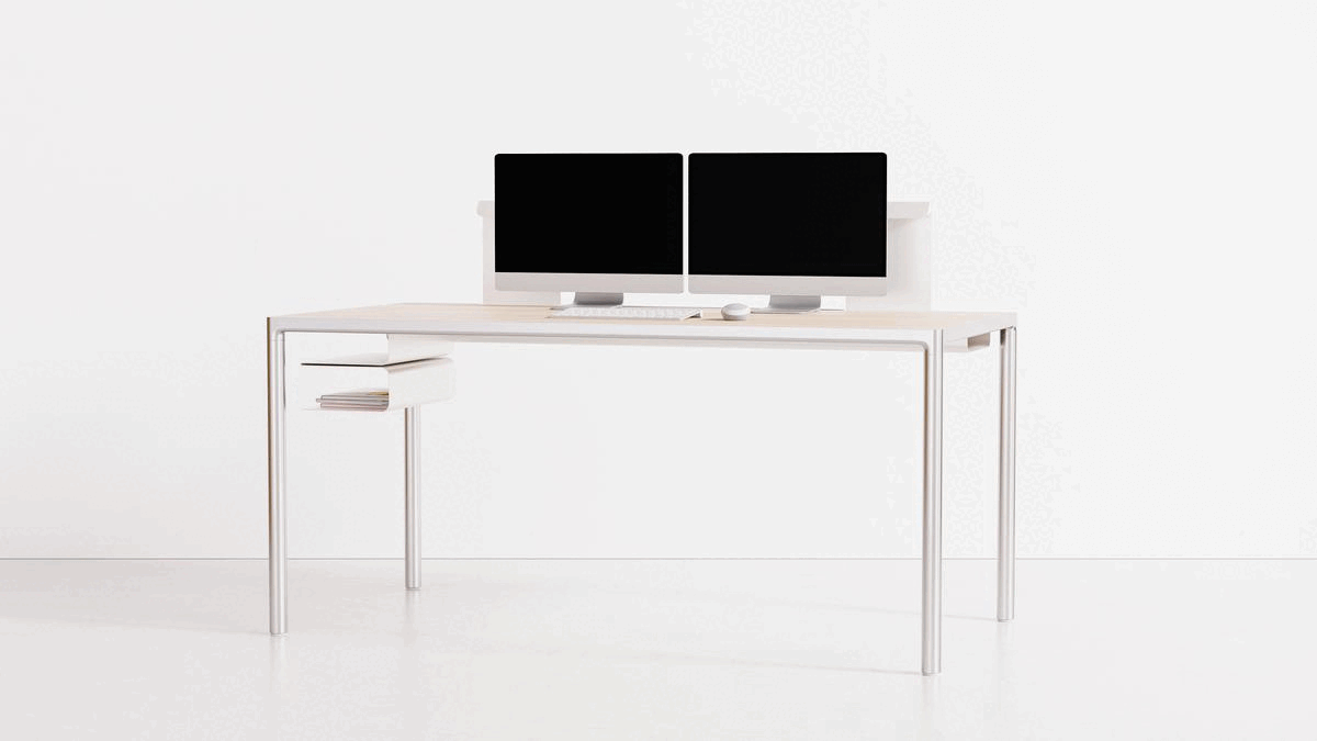 Elkington explains how the design caters for “the customisation needs of employees” and provides “flexibility and convenience for their employers”. The desk frame comprises aluminium extrusions and die cast corners, allowing for various desk sizes while an attachment system enables the addition of accessories such as a cable tray, backboard, laptop stand, shelving and a light.