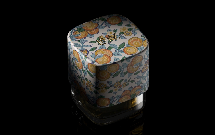 The final design features a custom oversized cap that covers most of the bottle including the label, “maximising the area available for the Liberty print”, he explains. The lid can also be turned upside down and used as a stand for the bottle, providing a” unique identity” for the fragrances and hinting at “an overall design language for future LBTY product categories”, Marshall reveals.