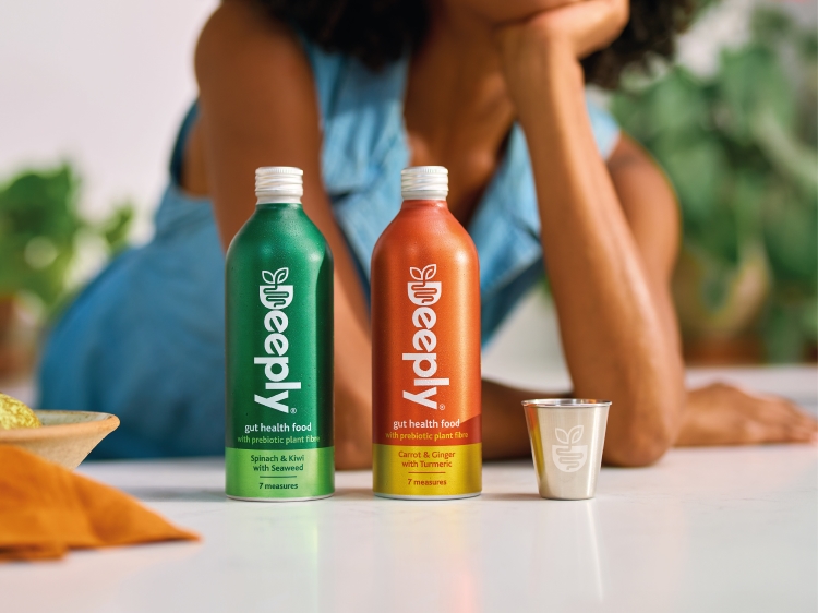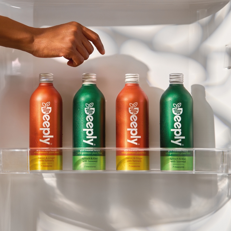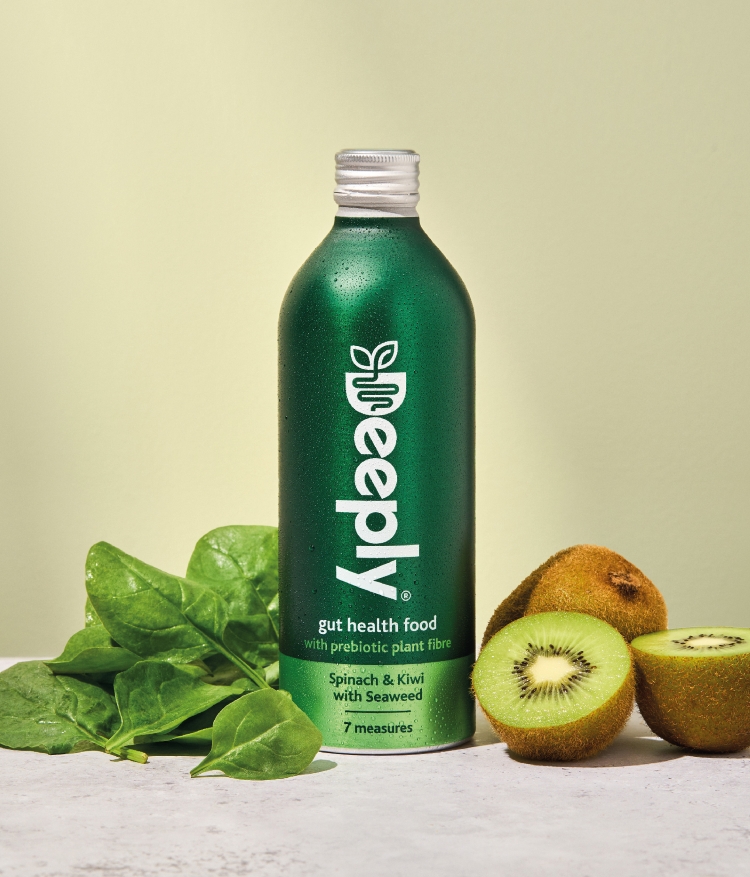 Deeply drinks come in two varieties – spinach and kiwi with seaweed, and carrot and ginger with turmeric – each containing a blend of natural plant fibres, fruit and vegetable extracts with natural prebiotics. Prebiotics feed good gut bacteria, helping build a strong gut microbiome, according to Deeply.