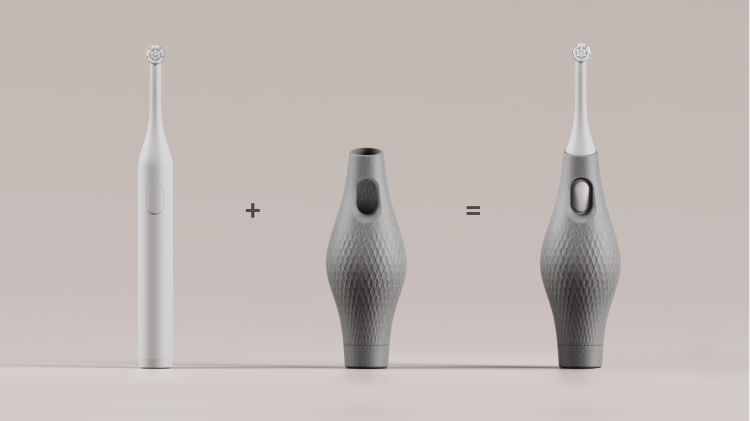 {access}ories will be made to order to a chosen combination of the 114 options, without having to wait for moulds, testing and manufacturing. The product is made from a resin-based plastic that meets oral care product health requirements, according to Holloway.