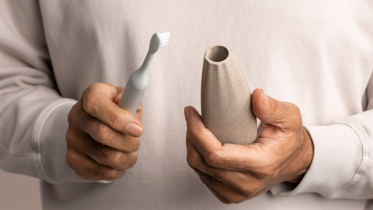 Following conversations with accessible design and disability experts in 2021, Holloway began research and found that people suffering with dexterity challenges were coming up with temporary “hacks” for toothbrushing. This included adding things like tennis balls and string to increase grip and make the toothbrush “more comfortable to hold”, he says.
