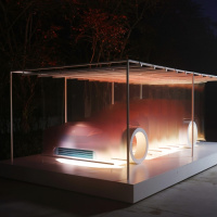 A pavilion made of mushrooms debuted at Glastonbury Festival 2023, designed by Temple Design director Simon Carroll to encourage the use of mycelium in the creative sector and beyond. To make the mycelium material, the roots were placed into a mould where it grew and reconnected into a solid panel over a period of a week or two and, once ready, Carroll glued it together.
