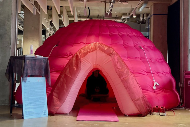 Taking the form of a ‘vagina-like’ tent, INTER/her by Camille Baker uses cutting edge tech to open up conversations around issues like ovarian and cervical cancer, endometriosis, and menopause.