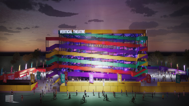 The semi-open-air structure is built from scaffolding, with Stufish saying its adoption will “future-proof” an industry decimated by the pandemic.
