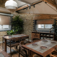 The studio tried to avoid “cliche design” cues, opting instead for “farmhouse style” with various materials, from brick and rough timber flooring to sawn timber planks for dining tables, says its founder and design director Ed Plumb. In a bid to retain elements of luxury, the studio incorporated aged brass and marble finishes.