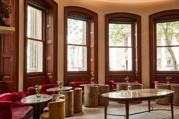 The National Portrait Gallery has re-opened after three years with two new hospitality spaces designed by Run for the Hills: ground floor café Audrey Green and below ground in the vaults, Larry’s Bar. Audrey Green is inspired by Breakfast at Tiffany’s and lets in a lot of natural light, making the space “cool, contemporary and airy”, says the studio.